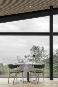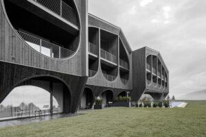 The composition is inspired by the typical architecture of the region and the classic wooden barn – a contemporary reinterpretation.